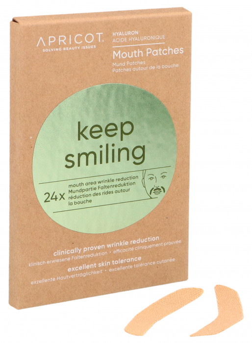 keep smiling You can only laugh about expression lines and preferably all day long. Because with the "keep smiling" face patches from APRICOT, you can simply stick them away. They are made from high-quality cotton and are enriched with particularly effective hyaluronic acid. The more often the patches are applied, the smoother, firmer and more relaxed the treated facial region becomes. They are particularly effective when applied daily for at least 1 hour over 3-4 weeks, and work even better overnight. Key features: - 24 single-use patches - excellent skin tolerance - reduces nasolabial and upper lip wrinkles - the patch gives facial expressions a break and allows them to relax - the hyaluronic acid optimally penetrates into the deeper layers of the skin
