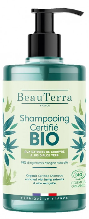 The new BeauTerra shampoo with hemp and aloe vera extracts is certified by Ecocert and Cosmos Organic, two of the most rigorous certification bodies. It combines the moisturising and nourishing benefits of hemp with the soothing properties of aloe vera for a hair routine that leaves your hair clean, revitalised, moisturised and lightly perfumed. Its organic formula combines a pleasant, sensual texture and performance for a shampoo that takes care of your hair and the environment!