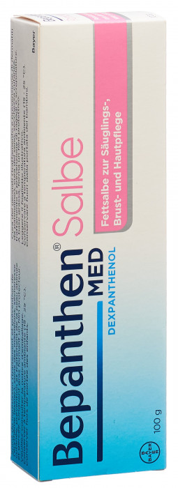 Bepanthen MED Ointment is used in infant care for the treatment and prevention of nappy rash, for breast care during the breastfeeding period and for the treatment of sore nipples, breast rash, for the prevention and treatment of sore and cracked skin, for skin dryness, to support the healing of wounds and to protect the skin from irritation.to support wound healing and epithelialisation (formation of skin cells) in the case of minor injuries, banal burns and abrasions, skin irritation, for example after UV light and light therapy, chronic ulcers (ulcers), decubitus(ulcers), bedsores, fissures (cracks in the skin and mucous membranes), skin transplants, cervical erosions (defects in the mucous membrane of the cervix) and interval treatments after cortisone therapy.