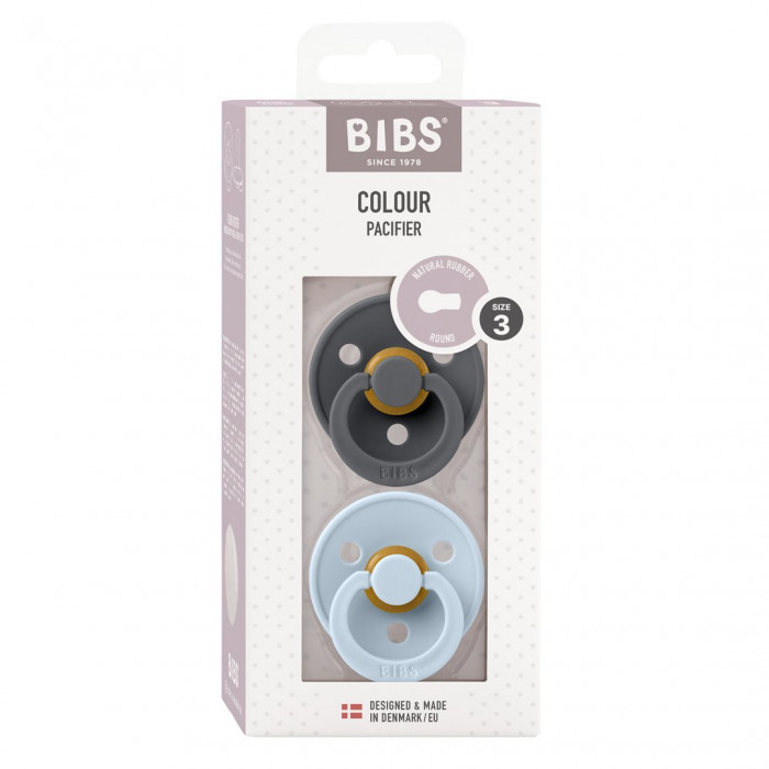 BIBS Colour Latex Round 12-18m iron baby blue 2 Stk