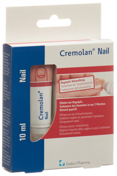 Cremolan Nail promotes the healing of discoloured and deformed nails caused by fungal infection or psoriasis. The treatment changes the microenvironment of the nail, improving the integrity of the nail surface while preventing the growth of fungi and bacteria.