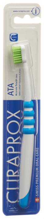 Toothbrush damage? The ATA puts an end to contact pressure: the round handle motivates you to use your fingers. It is almost impossible to use the pressurised fist grip. Pressure is reduced to a minimum. 4860 CUREN® filaments, 0.1 mm diameter.