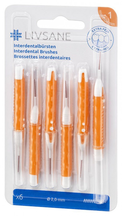 Ideal for cleaning normal and narrow interdental spaces as well as bridges and braces. Coated wire protects the oral cavity. Rinse the brush under running water after use. Target groups: For adults without special problems who want to clean the interdental spaces effectively. For adults with caries problems, gum problems, bridges and braces. For denture wearers. Main features and benefits: - ISO size: 1 - Diameter: Ø brush: 2.0 mm; Ø wire: 0.46 mm - For thorough cleaning of interdental spaces that are difficult to reach with a toothbrush - Extra-fine brushes suitable for narrow interdental spaces - Also suitable for dental bridges and braces - Gentle massage of the gums - Coated wire protects the oral cavity during the cleaning process - User-friendly handle provides a stable, comfortable grip - Hygienic protective cap can be used as a handle extension