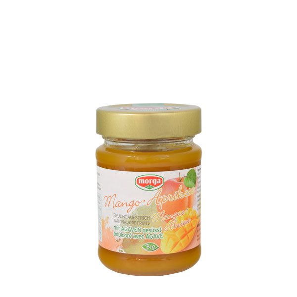 Mango apricot fruit spread organic sweetened with agave 60g. Selected fruits processed according to traditional methods give this fruit spread an unmistakable flavour.