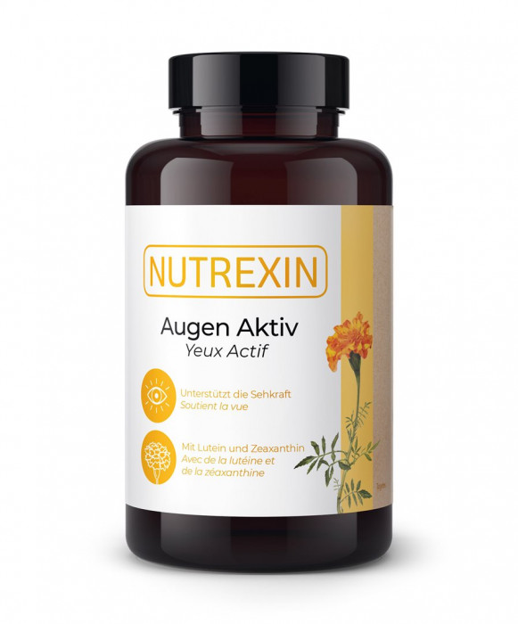 Nutrexin Augen-Aktiv contains natural vitamin A and important plant micronutrients such as zeaxanthin and lutein. In humans, high concentrations of these substances have been detected in the centre of the retina. The content of all these substances in the retina is dependent on dietary intake. In the eye, vitamin A contributes to the maintenance of normal vision.