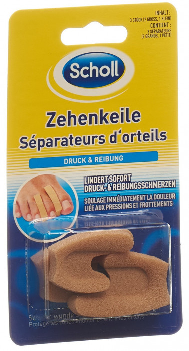The Scholl toe wedges provide relief from pain and soreness between the toes. The soft foam material cushions and protects sensitive areas of the foot.