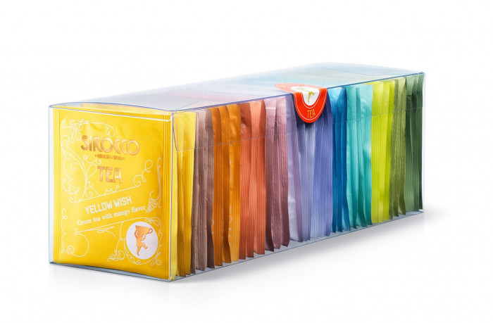 This collection of 36 consists of two tea sachets each of 18 different organic tea varieties and is packaged in a recyclable PET display.