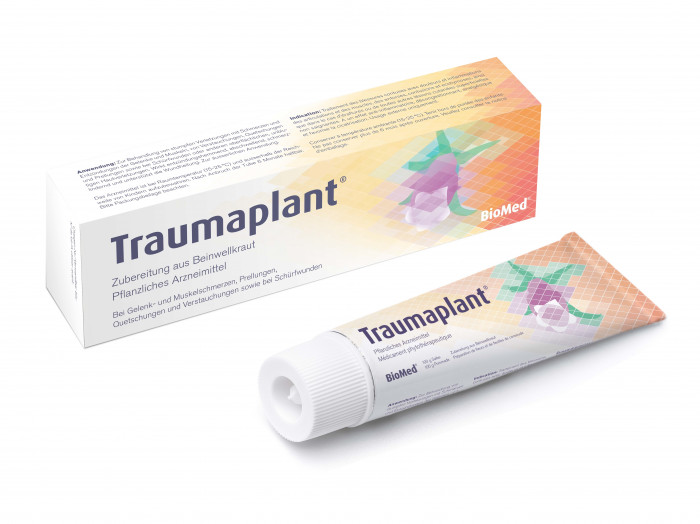 Traumaplant is a plant-based ointment preparation. The extract of comfrey (Symphytum) it contains is used for bruises and sprains (sports and accident injuries), joint and muscle pain and has a decongestant and pain-relieving effect. Traumaplant supports wound healing in the case of minor injuries. Traumaplant is indicated for the treatment of blunt (i.e. bloodless) injuries with pain and inflammation of joints and muscles, sprains, contusions and bruises as well as abrasions or other superficial, bloodless skin injuries.