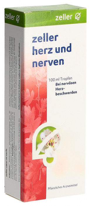 zeller herz und nerven Tropfen is a herbal medicinal product made from hawthorn herb, hawthorn fruit, passionflower herb, hop cones, olive leaves, clove root herb and holly leaves and is used for nervous heart complaints.