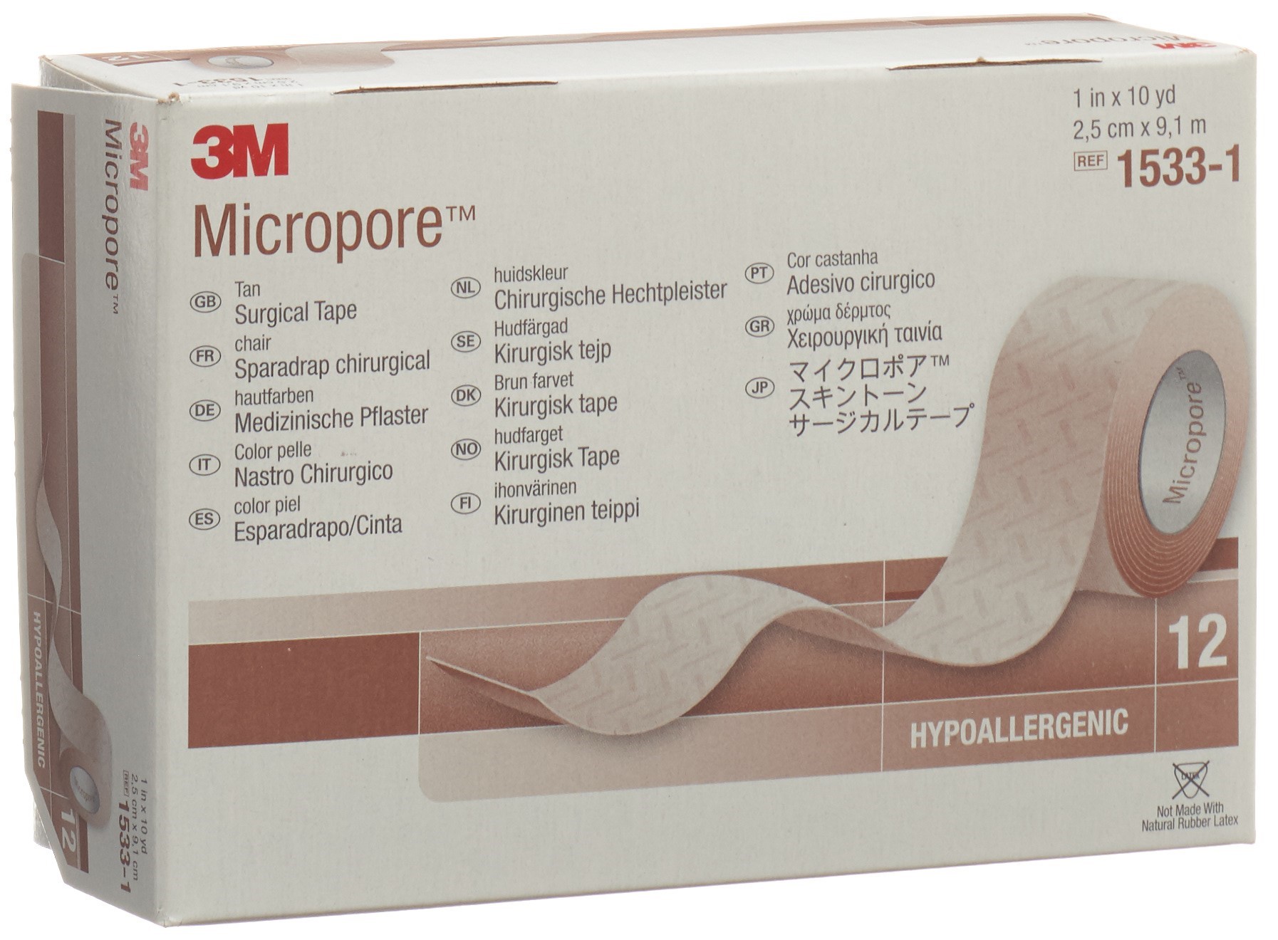 3M Micropore Rollenpflaster ohne Dispenser 25mmx9.14m hautfarbig 12 Stk