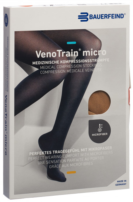 BAUERFEIND VenoTrain Micro KKL2 AG S plus/long geschlossene Fussspitze Mikronoppenhaftband caramel 1 Paar