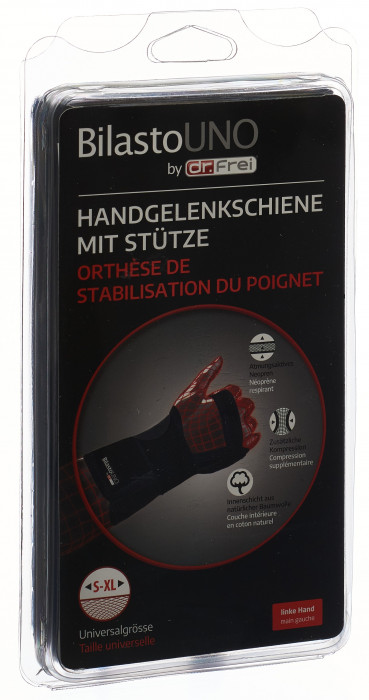 Bilasto Uno Handgelenkschiene S-XL links mit Stütze und Velcro