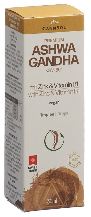 CannSol Premium Ashwagandha KSM-66 Tropfen mit Zink und Vitamin B1 Pip Fl 30 ml