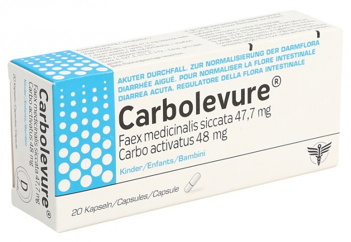 Carbolevure® enthält zwei natürliche Substanzen, Kohle und Hefe, die sich in ihrer Wirkung gegenseitig ergänzen. Kohle bindet Schadstoffe und Hefe reguliert die Darmflora. Carbolevure® kann zur Bekämpfung von Durchfallserkrankungen und zur Regulierung und Normalisierung der Darmflora eingesetzt werden. Nach ärztlicher Verordnung oder auf Empfehlung des Apothekers wird dieses Präparat auch gegen Darmstörungen bei Antibiotikatherapie verwendet.