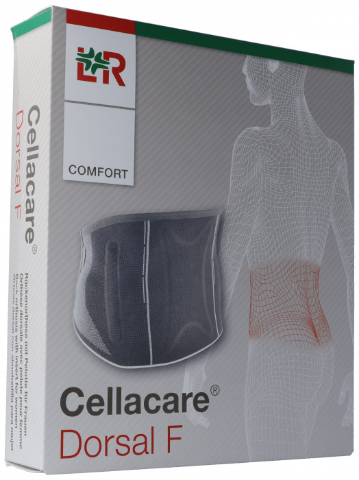 Cellacare Dorsal Comfort berücksichtigt die anatomischen Unterschiede zwischen Frauen und Männern. Eine integrierte x-förmige Platte und vier Stäbe tragen zusammen mit einer entnehmbaren Rückenpelotte zur Stabilität und Festigkeit der Orthese bei
