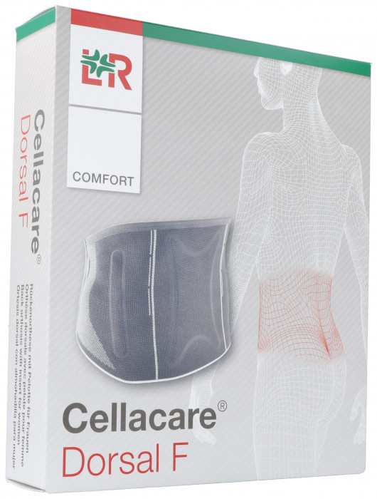 Cellacare Dorsal Comfort berücksichtigt die anatomischen Unterschiede zwischen Frauen und Männern. Eine integrierte x-förmige Platte und vier Stäbe tragen zusammen mit einer entnehmbaren Rückenpelotte zur Stabilität und Festigkeit der Orthese bei