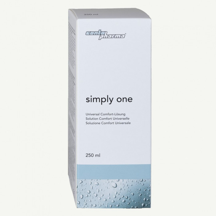 Eine Multifunktions-Lösung soll zum Reinigen, Desinfizieren, Spülen und Aufbewahren sowie Benetzen Verwendung finden, dies alles in einem Produkt. Die Universal Comfort-Lösung "simply one" ergibt einen spontanen wie auch nachhaltig guten Tragekomfort der CL. Die Regeneration der gesunden Hornhaut bei CL-TrägerInnen wird gefördert.
