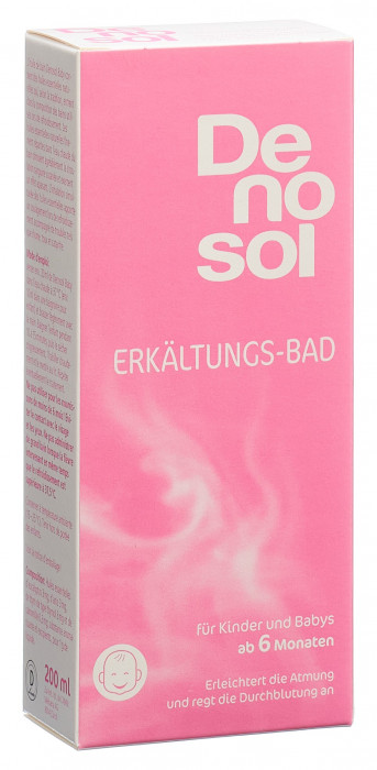 Denosol Baby Erkältungsbad enthält pflanzliche ätherische Öle. Die Zusammensetzung ist mild im Geruch. Es wird angewendet bei Erkältungskrankheiten (Erkrankungen der Atemwege). Die im warmen Badewasser fein verteilten ätherischen Öle regen die Durchblutung der Haut wohltuend an und lindern. Gleichzeitig bringt das Einatmen der ätherischen Öle eine Erleichterung bei Erkältungsbeschwerden mit Schnupfen, Husten und Katarrh.