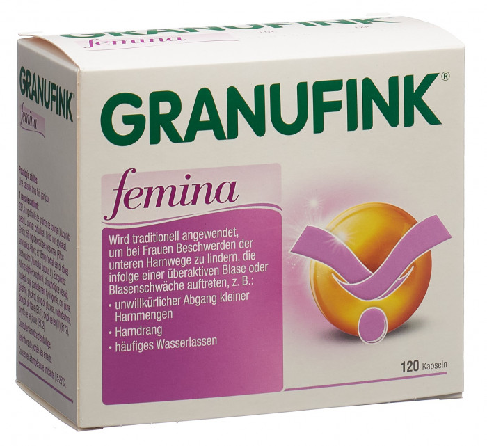 GRANUFINK femina wird traditionell angewendet, um bei Frauen Beschwerden der unteren Harnwege zu lindern, die infolge einer überaktiven Blase oder Blasenschwäche auftreten (z.B. unwillkürlicher Abgang kleiner Harnmengen, Harndrang oder häufiges Wasserlassen).