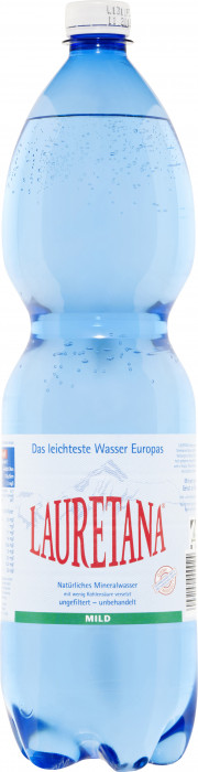 LAURETANA – Das leichteste Wasser Europas entspringt im über 4600 m hohen Monte Rosa Massiv, strömt unterirdisch in tiefen Windungen kristallinen Gesteins zur 1050 Meter hoch gelegenen artesischen LAURETANA Quelle und wird in Graglia im Piemont, Italien, frei fliessend, abgefüllt.Nährwerte