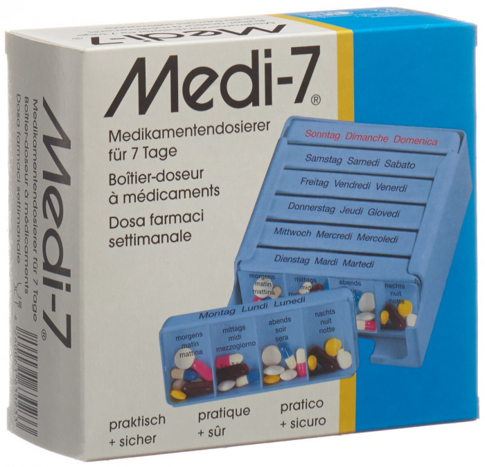 Medi-7 Medikamentendosierer 7 Tage deutsch/französisch/italienisch blau