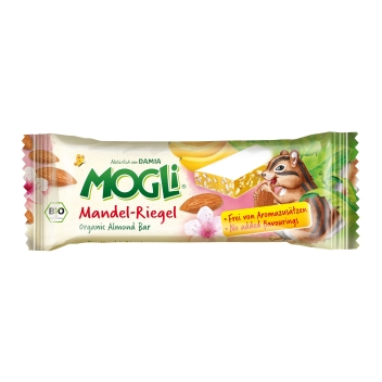 MANDELN* geröstet 33%, Apfelsaftkonzentrat*, Agavendicksaft* 12%, Reissirup* 9%, Vollkornreiscrispies* 8%, Bananen* getrocknet, Kokosmehl*, Palmfett*, Oblate* (Kartoffelstärke*, Sonnenblumenöl*) 2%. Legende: * Biologisch, ** Knospe, *** Demeter.