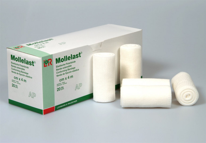 Angenehm griffig und sehr elastisch für Fixierverbände aller Art: Mollelast schmiegt sich faltenarm an und fixiert zuverlässig ohne einzuschnüren, besonders an konischen Körperpartien und im Gelenkbereich. Bei der elastischen Fixierbinde handelt es sich um eine Binde, die vor allem zur Fixierung von Wundauflagen und -verbänden verwendet wird. Darüber hinaus eignet sich das Produkt auch zur leichten Kompression, vor allem bei lymphologischen Finger- oder Zehverbänden. Durch besondere Wirktechnik ist die Binde breitenstabil und luftdurchlässig, liegt locker in der Hand und ist angenehm auf der Haut.