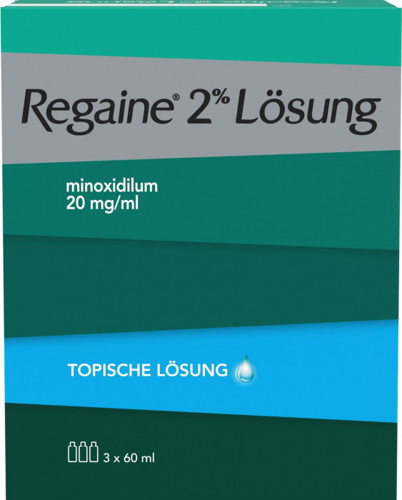 Regaine 2 % Lösung ist ein nur äusserlich anzuwendendes Haarwuchsmittel, das den Wirkstoff Minoxidil enthält.