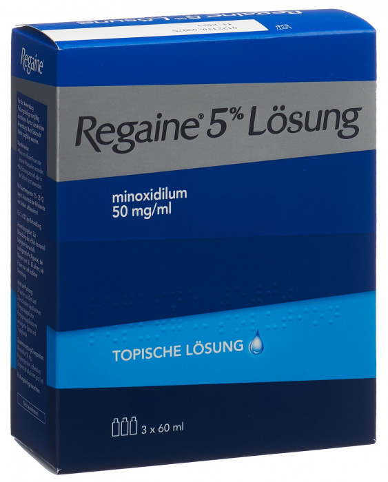 Regaine 5 % Lösung ist ein nur äusserlich anzuwendendes Haarwuchsmittel, das den Wirkstoff Minoxidil enthält.