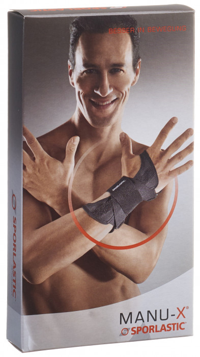 Die schwarze Sporlastic Manu X Handgelenkbandage in der Grösse 1 ist geeignet für Handgelenkumfänge bis 17cm. Die Bandage stellt die Ruhigstellung und Schonung des Handgelenks sicher und ist individuell anpassbar. Dank des hautfreundlichen Materials ist die Bandage angenehm zu tragen und sorgt für ein gutes Klima.