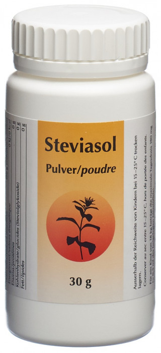 Verwenden Sie Steviasol Pulver zum Süssen von Getränken und Süssspeisen. 0.1 g entsprechen der Süsskraft von 30g Zucker.Nährwerte