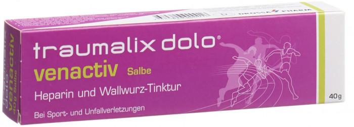 traumalix dolo venactiv ist ein Arzneimittel, das in Gel- bzw. Salbenform erhältlich ist und wird zur Behandlung von stumpfen (unblutigen) Sport- und Unfallverletzungen und zur unterstützenden Behandlung bei venösen Beinleiden angewendet.