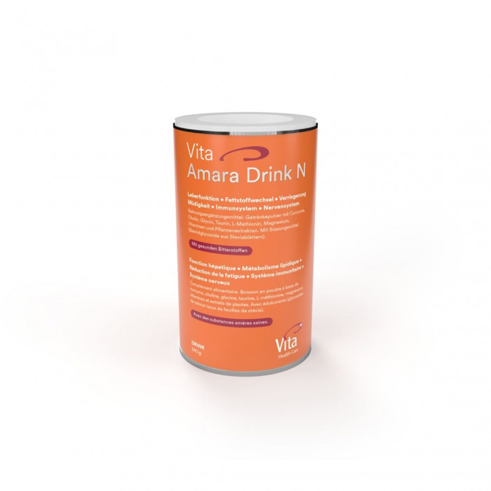Getränkepulver mit Curcuma, Cholin, Glycin, Taurin, L-Methionin, Magnesium, Vitaminen und Pflanzenextrakten. Mit Süssungsmittel (Stevia). Mit gesunden Bitterstoffen.