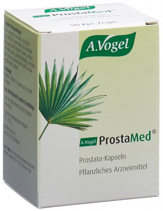 A.Vogel ProstaMed Kapseln sind ein Pflanzen-Präparat mit dem lipophilen Extrakt aus der Frucht der amerikanischen Sägepalme zur Linderung von Beschwerden infolge beginnender Prostatavergrösserung wie Harndrang, verzögerter Beginn beim Wasserlassen, Nachträufeln, Gefühl der unvollständigen Entleerung und Probleme beim Harnlösen.
