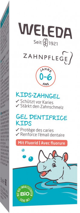 2x täglich Zähneputzen. Kinder unter 2 Jahre: Nur reiskorngroße Menge Zahngel benutzen. Kinder 2-6 Jahre: Nur erbsengroße Menge Zahngel benutzen. Zur Vermeidung übermässigen Verschluckens Zähneputzen nur unter Aufsicht. Bei zusätzlicher Aufnahme von Fluorid den Zahnarzt oder Arzt befragen. Ab dem 6. Geburtstag Weleda Junior-Zahngel mit 1450 ppm Fluorid verwenden.