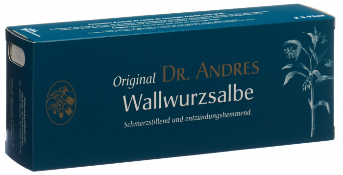 Original Dr Andres Comfrey Ointment is a concentrated, fat-free application made from fresh comfrey. Comfrey (Symphytum officinale, Boraginaceae) is traditionally said to have soothing, analgesic and anti-inflammatory properties. The extract used for the Original Dr Andres Comfrey Ointment is made exclusively from fresh roots, which are extracted immediately after harvesting using a specially developed process. The proportion of roots in this extract is 30%.