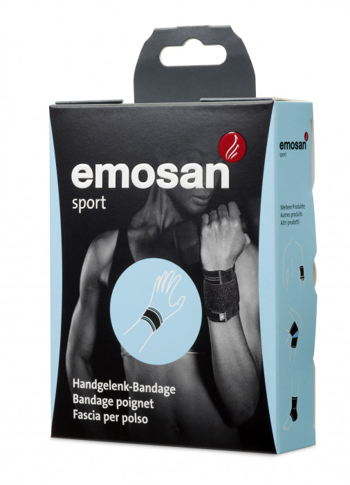 Elastic support for the wrist that relieves and stabilises the joint during sport.