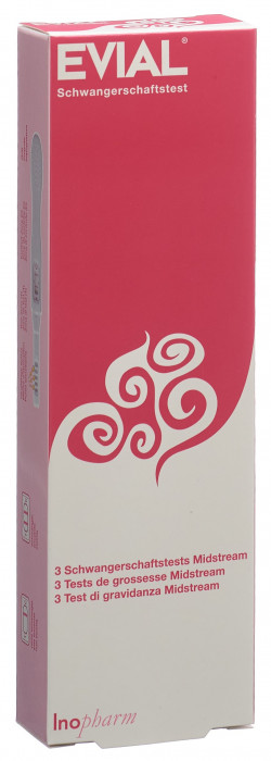 The reliable Evial Pregnancy Test Midstream is easy, quick and hygienic to use. Hold the absorbent tip in the urine stream for a few seconds. The result can be clearly read within five minutes.