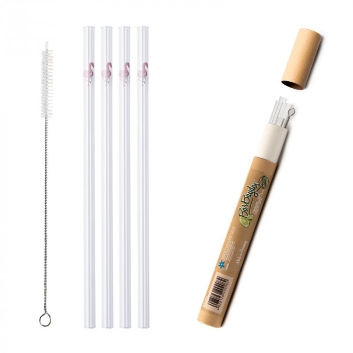 HERBORISTERIA Set Glastrinkhalme Flamingo 4 Stk x 3 Stk