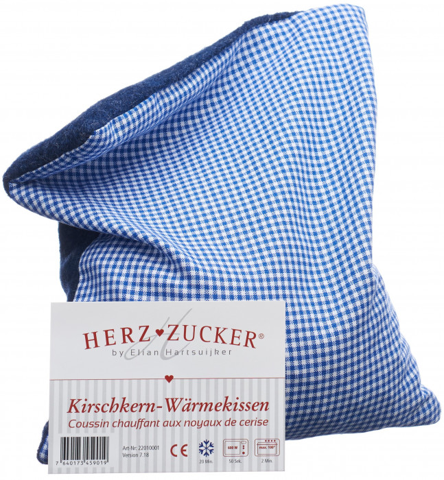 HERZZUCKER Kirschkernkissen 26x21cm Karo/Wollwalk blau