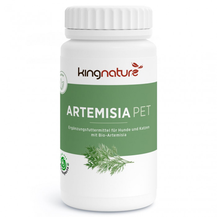 Supplementary feed for dogs and cats with organic Artemisia.