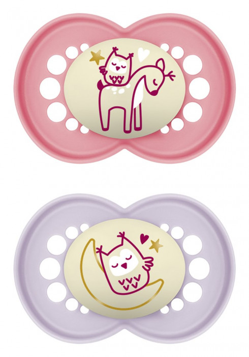 MAM Night Nuggi Silikon 6-16 Monate Girl 2 Stk