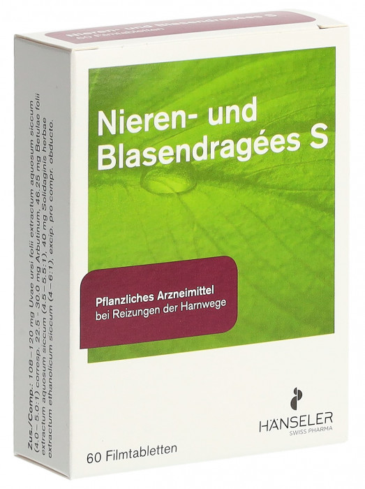The herbal medicine Kidney and Bladder Dragées S has a mild anti-inflammatory, urinary tract disinfectant and diuretic effect in bladder inflammation.