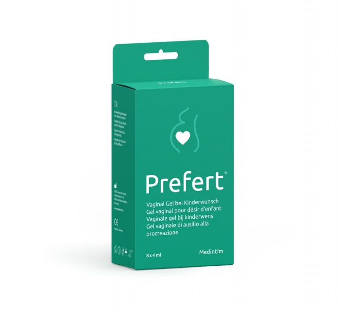 Prefert is odourless and tasteless and does not stain. It is also water-soluble and does not form an unpleasant film. The gel binds with natural vaginal secretions. One pack contains 8 hygienically sealed disposable syringes with 4 ml each and lasts for up to 4 cycles.