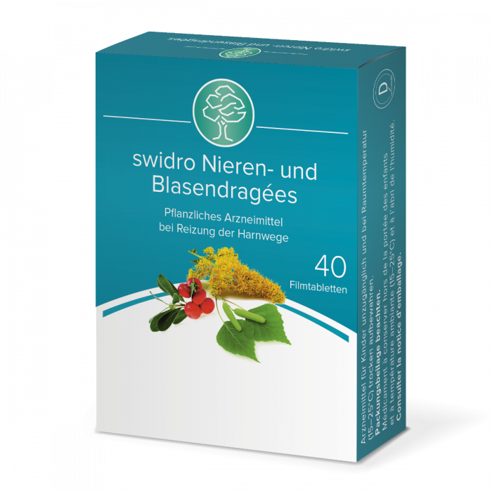 swidro kidney and bladder dragees contain extracts of bearberry leaves, birch leaves and goldenrod. The plant extracts contained have a mild anti-inflammatory effect, disinfect the urinary tract and stimulate urination.