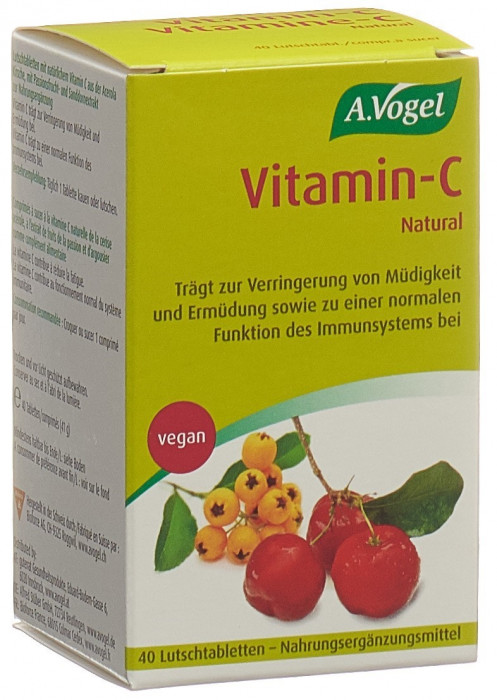 Lozenge with natural vitamin C from the acerola cherry, with passion fruit and sea buckthorn extract as a dietary supplement.