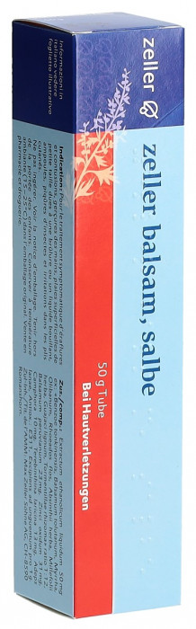 zeller balsam ointment is a medicinal product made from zeller balsam extract, Peru balsam, zinc oxide, larch turpentine and camphor and is used to treat abrasions and bruises.