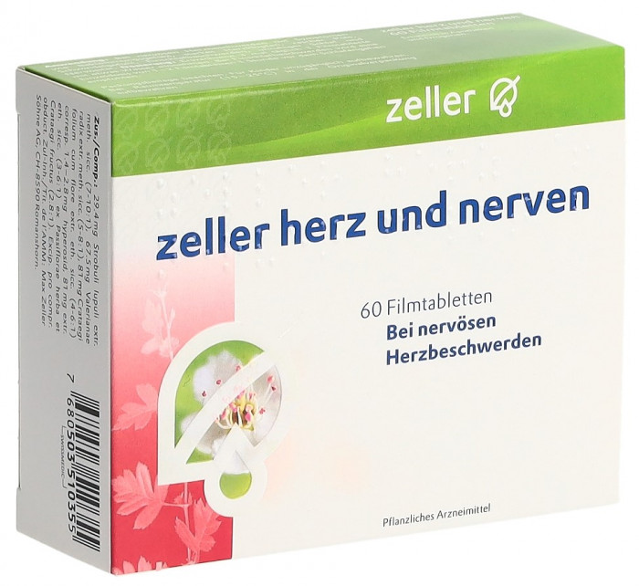 zeller herz und nerven Filmtabletten is a herbal medicine made from hawthorn herb, hawthorn fruit, passionflower herb, hop cones and valerian root and is used for nervous heart complaints.