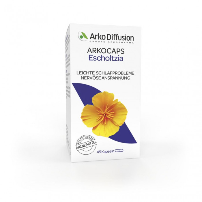 Les capsules ARKOCAPS ESCHOLTZIA contiennent une poudre obtenue à partir de l'herbe fleurie du pavot de Californie(Eschscholziae californicae herbae cum flore pulvis). Cette herbe en fleur est séchée à très basse température et pulvérisée afin d'obtenir une poudre fine contenant tous les principes actifs de la plante. ARKOCAPS ESCHOLTZIA est traditionnellement utilisée en cas de tension nerveuse et pour favoriser le sommeil en cas de légers problèmes de sommeil.