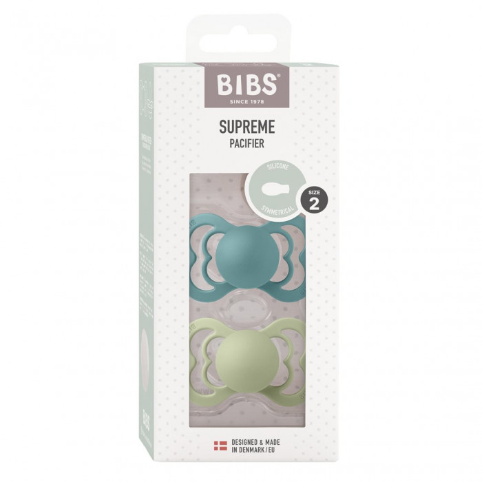 BIBS supreme silicone symmetrical 6-12m island sea sage 2 pce